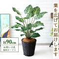 リビングのコーナーや、家具の隙間などにさりげなく置ける【 小型サイズ 】です。170cmクラスの大型植物だと圧迫感が出てしまう場所でも、このサイズなら床置きしてもスッキリ収まります。軽量で移動も楽なので、掃除の際も邪魔になりません。
