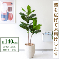 【すぐ飾れる】 フェイクグリーン フィカス カシワバゴム 140cm 鉢付き / 法人・開店祝い 店舗・オフィス装飾 空間演出 立札無料・造花/PG266-SFO31IV