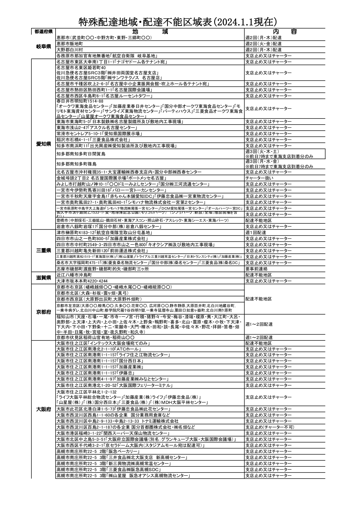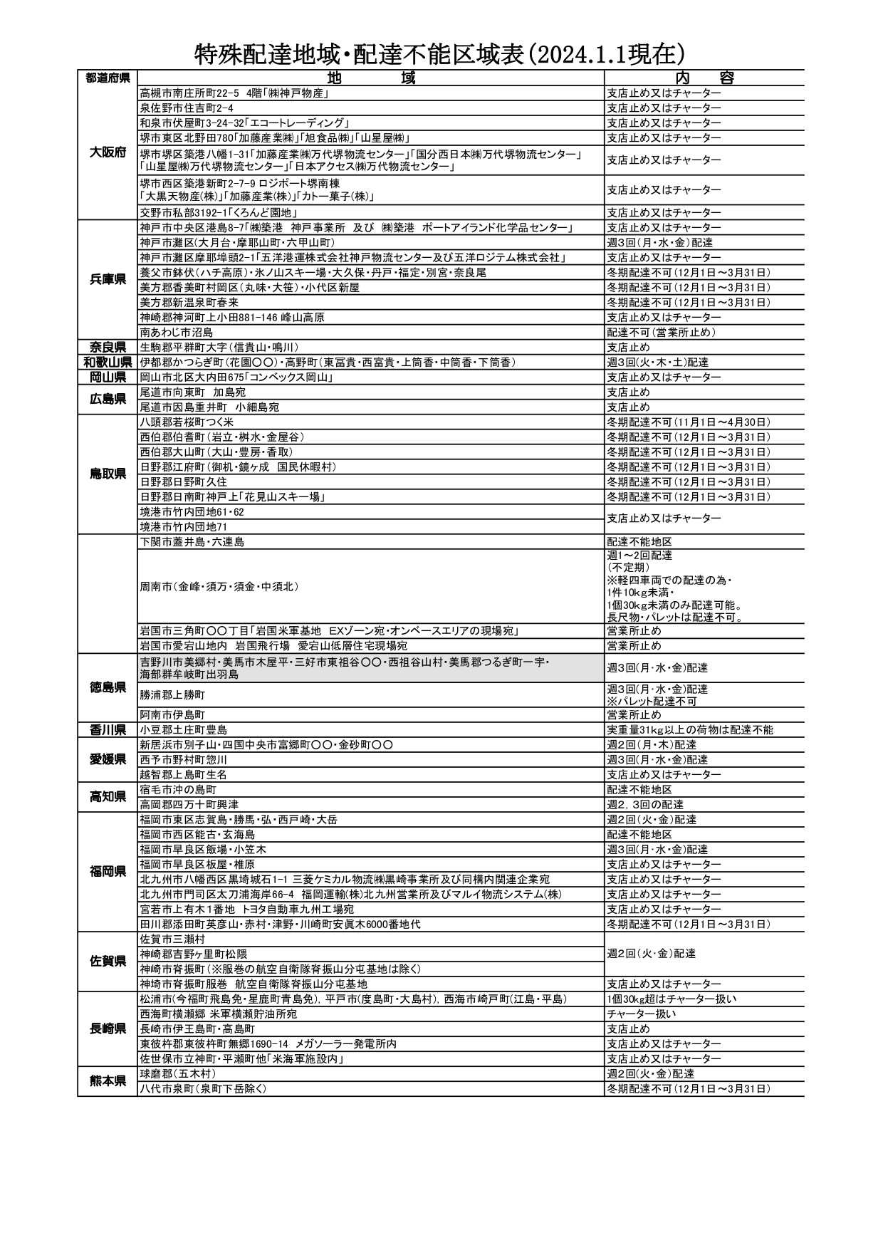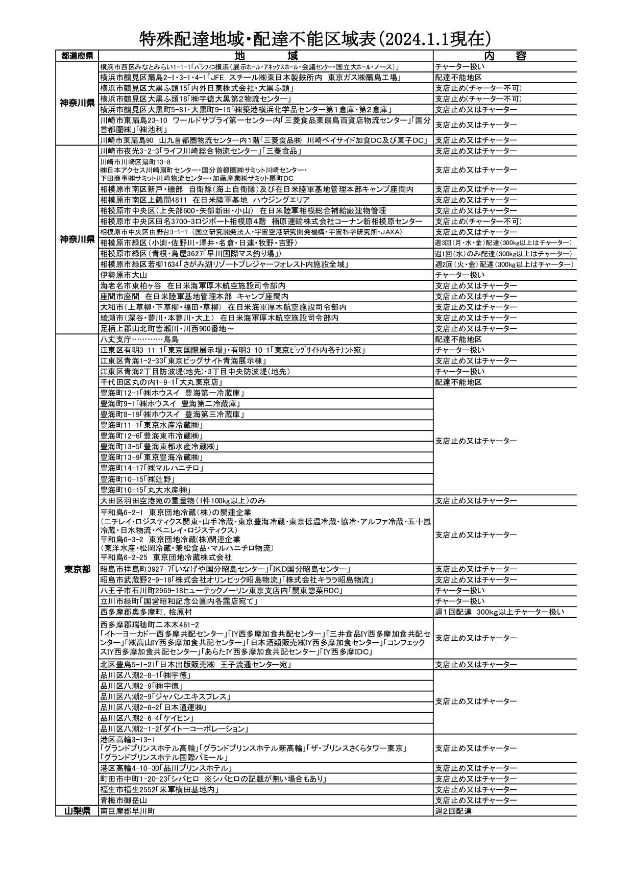 配達不能地域一覧